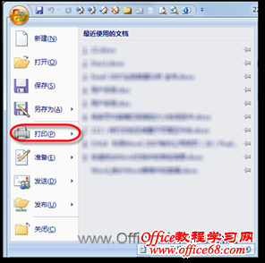 1)在打开的Word文档中,单击【Office按钮】,执行下拉菜单中的【打印】命令(如图2所示),打开“打印”对话框。