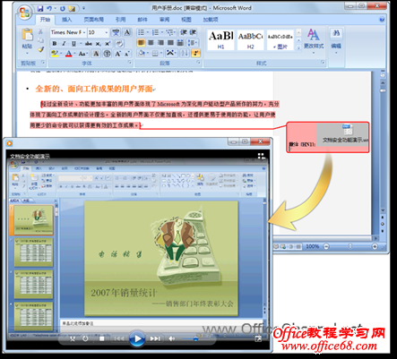 图5 设置视频文件的名称 (7)将视频文件插入到批注中之后,Word 2007会在注释中显示一个视频文件图标,双击该图标即可启动默认的播放软件,观看视频演示,如图6所示。