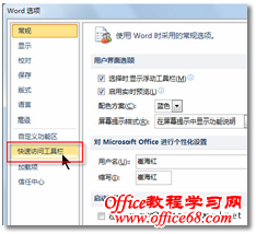 图2 选项按钮 3. 在随即打开的“Word选项”对话框的导航窗格中,单击“快速访问工具栏”选项,如图3所示。