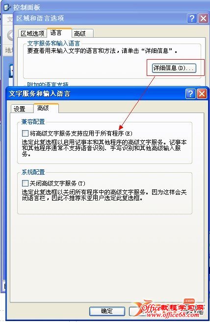 不知道什么原因,Word中无法输入汉字了,这是怎么回事呢?首先我们要看是那个版本的Word输入不了汉字,Word 2003、2007和2010出现这种情况,常规的解决方法是不太一样的。 Word 2010无法输入汉字 首先,点击文件: 点击左下角的选项,然后进入“高级” : 让右下角的“输入法控制处于活动状态”的勾号去掉,然后重启 Word 就可以了。 ![]() Word 2007输入不了汉字 Word 2007不能输入汉字,大多是关闭了“高级文字服务”导致的,重新开启“高级文字服务”就可以解决这个问题。 开启方法:控制面板→区域和语言选项→语言选项卡→详细信息→高级选项卡,在上面开启“高级文字服务”就可以解决word里面不能输入汉字的问题。 ![]() Word 2003无法输入汉字 Word2003中无法输入中文,一打字就自动关闭,遇到这种情况,大家可以采取下面的解决方法: Word 2003出现无法输入汉字的问题,多是输入法的原因,将输入法设置中的默认输入语言设置为“美式键盘”或者“微软拼音输入法”,要是您用惯了搜狗、QQ等输入法,要把输入法卸载了重装,问题就解决了。 |