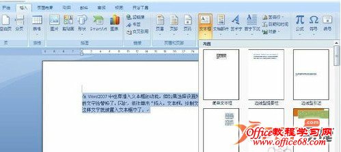 单击【插入】选项卡,找到【文本框】按钮,选择文本框的样式,单击选择就可了,文本框插入到Word后,是置于Word上方的中间的,我们可以用鼠标调整文本框的位置,还可用鼠标来调整文本框的宽和高。
