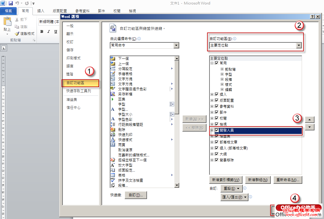 在预设状态下,Office 2010 不会在 [功能区] 显示 [开发人员] 的命令选项,所以需要额外设定,以便显示 [开发人员] 命令选项。