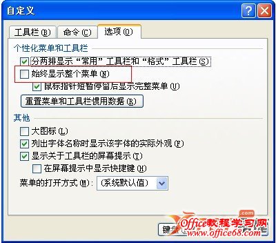 有的人觉得在Word2003中,菜单中的很多功能是不常用到的,与其每次单击某菜单按钮后菜单显示非常长,倒不如把自己不常用到的功能折叠起来,等到我们有需要的时间,单击哪个显示菜单中隐藏功能的按钮,菜单就又回到原来的样子了。也有些朋友看到Word 2003中,单击显示菜单后,只能显示一部分功能,非常不方便,希望可以显示Word全部菜单。不过您是以上哪一种需要,设置只显示Word菜单常用功能也好,设置Word 2003菜单全部显示也罢,他们的设置方法是相同的。 ![]() 操作方法: 1、在Word 2003中点击【工具】【自定义】,打开Word自定义设置对话框。 2、切换到【选项】选项卡,在“个性化菜单和工具栏”中找到“始终显示整个菜单”。 ![]() 3、如果您是想要展开Word菜单后只显示部分常用功能,那么请取消勾选。 4、如果您是希望展开Word菜单后显示该菜单下的全部内容,请勾选。 其他Word个性化菜单常见问题: 1、如何删除Word文档文件菜单下的历史记录? 答:点开始——运行——regedit——进入注册表后,在我的电脑——HKEY_CURRENT_USER>SOFTWARE>MICROSOFT>WINDOWS>CURRENTVERSION>EXPLORER>COMDLG32>OPENSAVEMRU>DOC里有,除了默认和MRUList以外,其他的都删除,就清空了。 2、word文档的菜单栏(文件、查看、收藏、工具、帮助等等)没有了怎么恢复? 答:打开资源管理器或者我的电脑,依次找到进入documents and settings \ Administrator(或者是你的账户) \ Application Data \ Microsoft \ Templates文件夹,删除该文件夹下的normal.dot 和normal.tmp 文件,然后重启Word就好了,这是Word模板出现问题了。 |