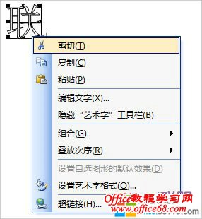 ③我们右键单击刚才插入的艺术字,选择剪切;