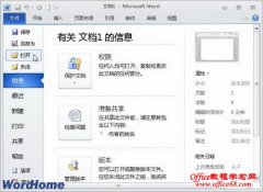 相对于Word2007的Office按钮,Word2010中的文件按钮更有利于Word2003用户快速迁移到Word2010。文件按钮是一个类似于菜单的按钮,位于Word2010窗口左上角。单击文件按钮可以打开文件面板,包含信息、最近、新建、打印、共享、打开、关闭、保存等常用命令。 操作步骤 在默认打开的信息命令面板中,用户可以进行旧版本格式转...
