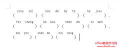 首先看一下完成后的效果图。 可以根据你所需要的样式进行改动。想达到上面的效果,操作如下。 先输入词语,词与词之间加一空格,也可以每词占一行,主要的目的是为了给词加上括号。下面是以词间加空格为例进行说明。输入完成后,要给词加上括号以方便小朋友填空。按 ctrl+h 打开查找替换窗口,查找 ,替换为)(,这是把词...