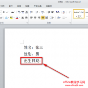 自己制作好的word文档,如果需要别人填写出生日期,可以通过使用日期控件来保证别人输入的日期格式一样。 1、如图,比如我们要在出生日期后面添加一个日期控件,就将光标定位在出生日期:后面。 2、然后点击开发工具下的日期控件,如图所示。 3、点击日期控件之后,出生日期:后面就会有一个文本框,这时候我们点击一下设...