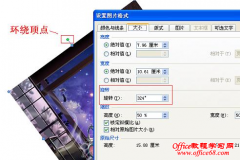 插入图片后有时候需要对图片进行环绕操作,点击已经插入的图片,这时候图片会出现环绕顶点,把鼠标放在图片上方的环绕顶点上,即可任意角度环绕图片,或者右单击图片,选择图片格式设置,打开图片格式设置窗口,点击大小选项卡,在旋转选项处填写精确的旋转角度。如图所示:...