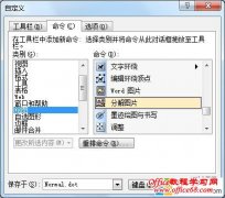 有时候用Word排版的时候为了让版式更为精美,我们可能会将一些文字设置得更加个性化,但单凭Word中的那些艺术字、格式、样式根本无法满足我们的需求。这里给大家推荐一种好方法word分解图片,可以根据自己的喜好来设计出自己想要的样式。 将分解图片按钮放到工具栏上 ①单击Word菜单栏工具中的自定义; ②在弹出的自定义窗...