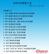 word技巧 、word快捷键:Word对于我们办公来说,是不可缺少的办公软件,因为没有它我们可能无法进行许多任务。所以现在的文员和办公室工作的人,最基础的就是会熟悉的使用Office办公软件。在此,为提高大家Word使用水平,特为大家提供word2003和word2007所有的常用快捷键大全。 常用快捷键 快捷键 作用 Ctrl+Shift+Spaceba...