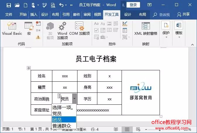 Word中除了能设置下拉菜单,我们还可以设置日期控件、复选框内容控件等,其设置方法类似,童鞋们快动手试一试吧! |