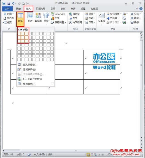 1 打开Word文档,在“插入”选项中选择“表格”。确定表格的大小。