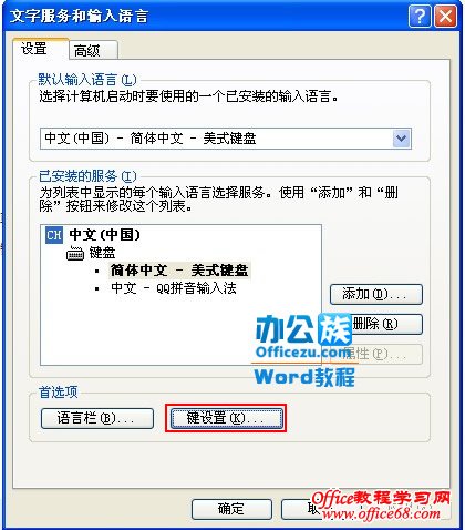 4 此时打开“文字服务和输入法语言”在“首选项”中单击“键设置”。