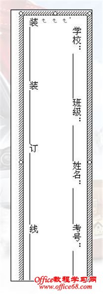 第二步:执行“插入→文本框竖排”命令,再在文档中拖拉出一个文本框,并仿照图2的样式输入“学校”、“班级”、“姓名”、“考号”、“装订线”等文字以及紧随其后的下划线。(图2)