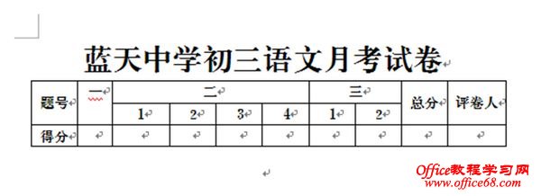 通常,在试卷的首页上端,会有试卷标题、评分者姓名、评分栏等项目,我们可用插入表格的方法表格制作。