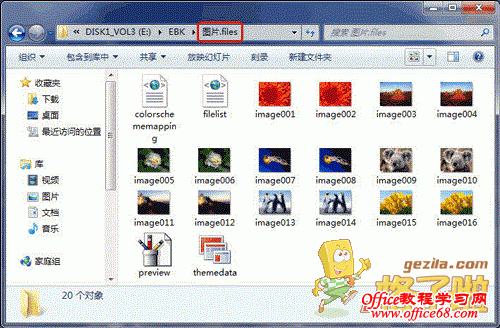 ![]() 进入到上述网页文件所在的文件夹中,你会发现有一个名称为“文件名.files”(如“图片.files”),进入其中,前面 Word 文档中的图片就一一被保存在里面了。