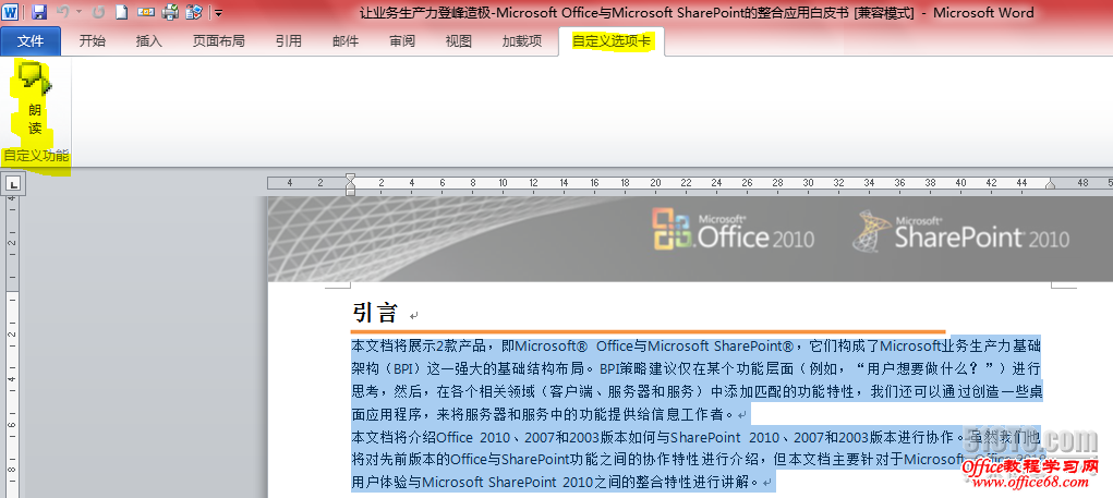 今天我帮老妈做了一件事,用到了word2010的朗读功能。