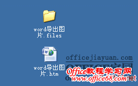 单击“保存”后,在保存目录出现一个文件夹和一个同名的网页文件(见下图),那个文件夹中保存了Word中的所有图片(“image00*.jpeg”或者“image00*.gif)注意,有几幅相同的图片,文件最大的是原始图,小的是缩略图,选大的就是了。