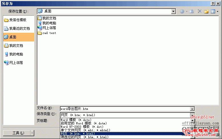 在“另存”对话框中选择文件保存名和路径,把保存类型选 网页(在文件名下面)-桌面(保存到桌面上)