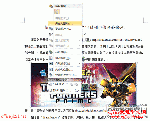 注:2010版word 直接在文档中图片上点击右键,选择另存为即可保存图片到指定的文件夹。若是旧版的则可以按以下步骤来保存图片。
