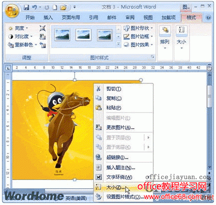 1、选中需要裁剪的图片,此时系统自动展开“图片”工具栏。 在Word 2007中如何精确裁剪图片? 与以往版本的Word相比,在Word2007文档中,用户可以通过两种方对图片进行裁剪。一种方式是通过“图片工具”功能区“格式”选项卡“大小”分组中的“裁剪”工具进行裁剪图片;另一种方式则是在“大小”对话框中指定图片裁剪的尺寸,操作步骤如下所述,希望对您有所帮助: 方法一: 第1步,打开Word2007文档窗口,首先将图片的环绕方式设置为非嵌入型,单击选中需要进行裁剪的图片。在“图片工具”功能区的“格式”选项卡中,单击“大小”分组中的“裁剪”按钮。 方法二: 第1步,打开Word2007文档窗口,右键单击需要裁剪的图片,在打开的快捷菜单中选择“大小”命令,如图1所示。 在WORD中如何裁剪图片指定大小? 方法1、右键点图片,出现图片浮动工具栏,点裁剪按钮,鼠标变成裁剪按钮形状,点图片边上的控制点,拉动即可。 WORD中无法裁剪图片怎么办? 问题描述: 原来对图片点击右键显示图片工具栏时,显示的工具栏里裁剪命令可以使用;后来右键对图片点击了编辑图片,显示的工具栏里裁剪按钮变成灰色,无法使用裁剪如何恢复? 光标置于工具栏的最右侧空白处——右键——自定义——命令——类别:找“绘图”,对应的命令找“裁剪”——直接拉到绘图工具栏里面——光标自定义对话框。现在就有“裁剪”按钮了。 改变图片的环绕方式(嵌入式是无法裁剪的)方框里有个小狗的那个按钮就是调整环绕方式的。或者右击图片-设置图片格式-版式,在这里可以改。 首先要保证光标选中了你要修改的图片。 在word2007里面怎么裁剪CAD图片? 从CAD里面直接复制图形到word2007里面,发现不能裁剪图形边界的空白区域,很多人无法解决这个问题,我们知道在2003里面有“图片工具栏”选项卡,在2007里面可以这样设置来裁剪图片。 点击word2007左上侧的"office按钮"选择"word选项",然后选择左侧“自定义”选项,在右边左上侧选择“从下列位置选择命令”,点击选择下面的 “图片工具|格式选项卡”,从提供的菜单项目里面选择“裁剪”后点击中间的“添加”,在右上选择应用于“所有文档”或者“当前文档”,这样菜单就出现在顶部常用工具栏里面了,就可以随时处理CAD图片了。其实在"word选项"里面是可以随意调出所有可能提供的菜单到你自定义的工具栏里面的。 word里面确实不好裁剪,所以只有一个比较笨的方法,先把CAD图复制到Excel(注意:复制到Excel时点右键-选择性粘贴-图片(增强型图元文件))再把图复制到Word里面吧,也可以在Excel里裁剪好再复制Word里面,不过这样图是不能双击回到CAD里面再编辑的。 另外,推荐你BetterWMF软件,也许就是你想要的~ word里到底该怎么裁剪图片(拖动没有反应)? 问题描述: 我有一张图片,插入到excel中后,只要点击该图片,则自动弹出一行“工具栏选项”的图标,该图标中有“裁剪”的图标,利用它可将图片中不要的地方裁掉,可是在word中怎么没有该工具栏?在菜单中如何找? 选中图片 |