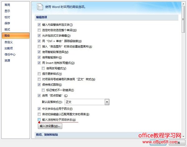 2. 选项翻开之后,挑选“高档”,然后把“输入法处于活动状况”的钩钩去掉