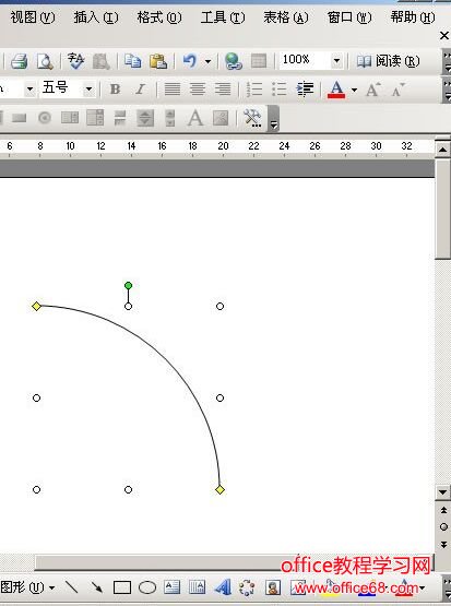 按住Shift键的同时可画出45度圆弧(画圆弧方法:打开绘图工具栏,单击“自选图形-->基本形状-->弧形”),按住Ctrl键可画出自中间向两侧延伸的圆弧,同时按住这两个键则可画出自中间向两侧延伸的45°圆弧,按住Alt键可画出一端固定的圆弧,同时按住Ctrl和Alt键则可画出一端固定的45°圆弧。鼠标拖动的距离决定弧线的长短,拖动的方向决定弧线开口的方向。