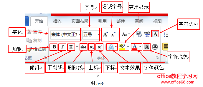 关于字体功能区的工具按钮详解,见下图: