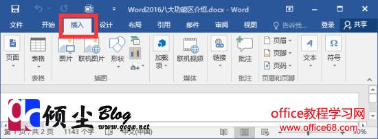 【插入】【插入】功能包括页面、表格、插图、应用程序、媒体、链接、批注、页眉和页脚、文本和符号几个组,对应Word2003中“插入”菜单的部分命令,主要用于在Word2016文档中插入各种元素。如下图