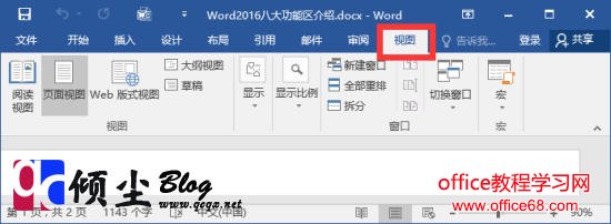 【视图】【视图】功能包括文档视图、显示、显示比例、窗口和宏几个组,主要用于帮助用户设置Word2016操作窗口的视图类型,以方便操作。如下图 |