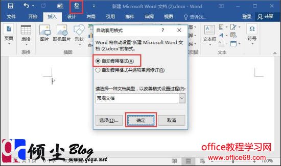 2.在快速访问栏点击“自动套用格式”,在弹出的对话框中选择“自动套用格式”,然后点“确定”按钮。如下图