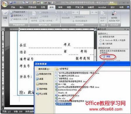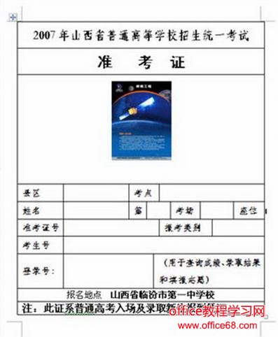 使用的邮件合并功能可以完成很多重复项目的劳动。不知道大家是否意识到,我们最熟悉的准考证也是使用这个完成的。当然,我们不否认很多专业化的考证制作工具已经完全把这项任务承担了,但是作为Word中实用又很重要的功能,邮件合并在日常工作中还是有重要的应用。我们以制作一张高考的准考证为例,把整个过程展示给大家,希望您能在每个步骤中学到有用的东西。需要说明的是,本实例仅仅为熟悉Word操作而撰写,请勿用于非法用途。