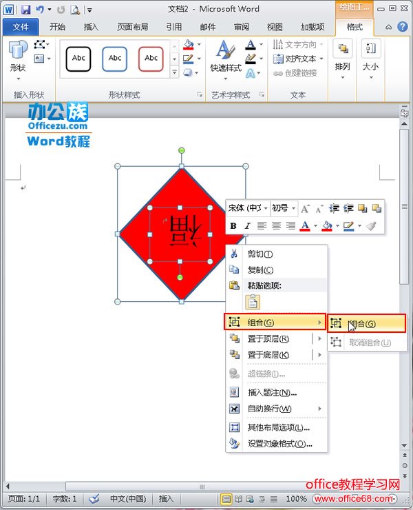 提示:需要注意的是把一切准备好之后千万不要忘记将两个图形组合起来。 |