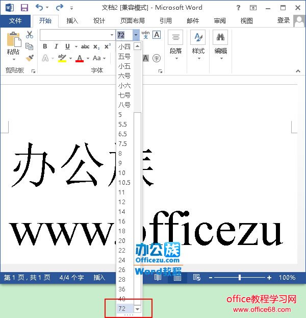 Word中字号下拉框可选的范围最大只到72磅,但很明显的,如果我们要打印比较大的海报什么的话,72磅是远远不够的。如何放大Word中的字体呢?方法是很多的,一一看看吧。 问题描述Word中字号下拉框的可选范围只到72磅,无法满足我们的需求。