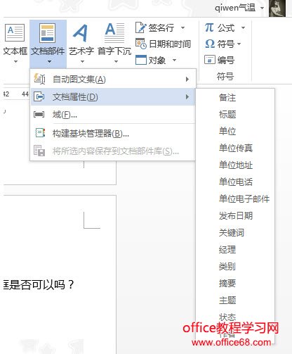 点击“插入-文档部件-文档属性“,里面可以看到Word系统自带的标记文本框。