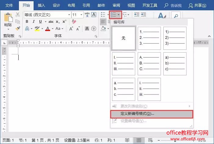 (1)首先点击【开始】-【编号】-【定义新编号格式】。