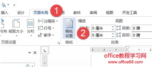 第二步:稿纸设置 点击“页面布局—稿纸设置”按钮。(下图2处)进入稿纸设置界面。