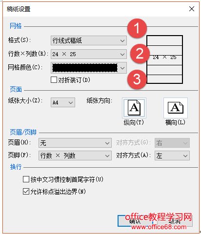 在稿纸设置中,设置王格格式:行线式稿纸,行数X列数选择最多的,网格颜色设置为黑色。