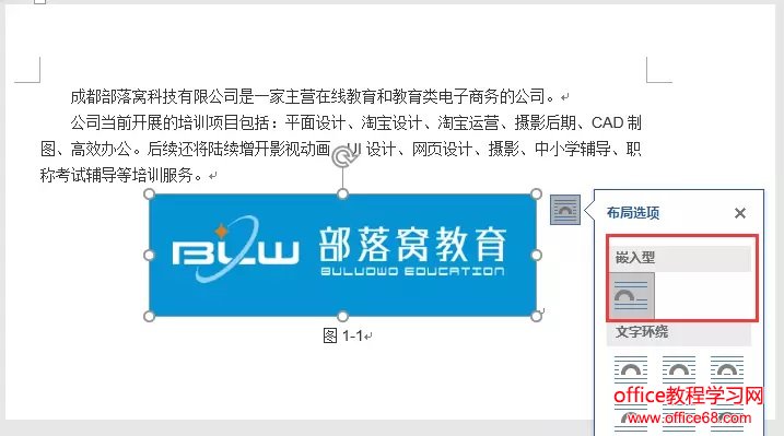如果当前需要排版的图片只有一张,那么推荐使用嵌入型排版。只需选择图片,点击右上角的“布局选项“按钮,选择”嵌入型“。图片会像字符一样固定在某个位置,不会随意变动。
