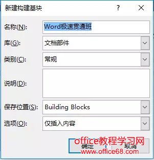 (2)打开”新建构建基块“对话框,在”名称“文本框吕输入名称。