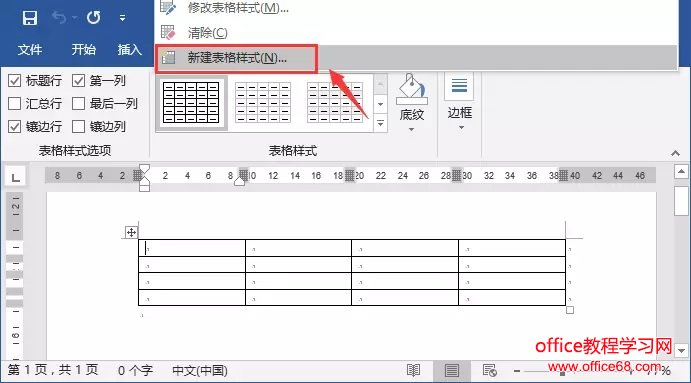 方法一:首先在文档中随便创建一个表格,然后单击表格内容激活功能区中的【表格工具】-【设计】选项卡,在【表格样式】库中选择【新建表格样式】命令即可。