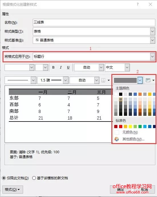 提示:如果想为表格内部和文字进行设置,同样可打开”根据格式创建新样式“对话框进行详细设置,设置方法与上方相同。童鞋们,动手试一试吧!