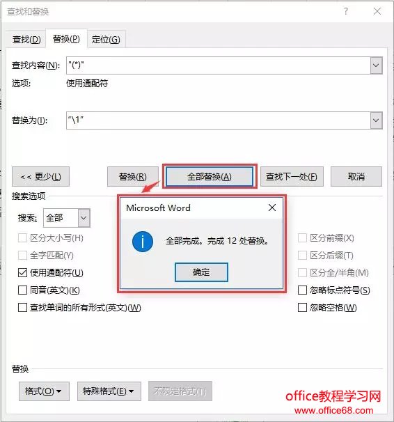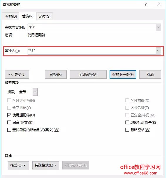 ![]() (3)在“替换为”输入框中输入“\1”。