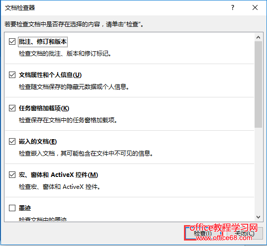 (2)在打开的”文档检查器“对话框中单击”检查“按钮。