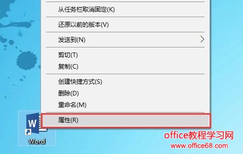 (1)首先,在桌面上的Word图标上单击鼠标右键,在弹出的快捷菜单中选择“属性”命令,打开“Word 2016属性”对话框。