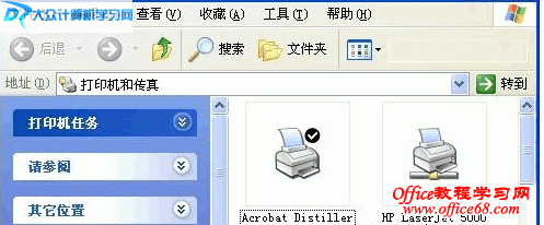 在安装了Adobe Acrobat完全版后,Windows系统的打印机任务中就会添加一个Acrobat Distiller打印机,如下图: