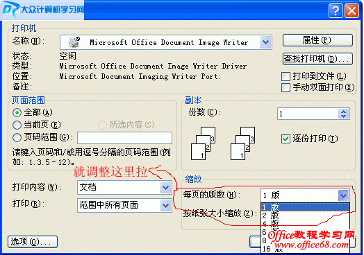 在Word里面,为了到达节约纸张的目的,有时我们需要把已经做好的一份多页文档缩到一页中一起打印,即在一页中显示出多页的内容,如何才能实现呢? 完全可以用调整打印选项的方法来处理! 执行单击:“文件”--“打印”; 弹出如下打印对话框:如图: |