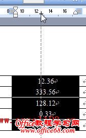 这样,所选择的数值就会按小数点对齐了,标尺上的制表符也变成了“小数点对齐式制表符”。选择这些数值后,拖动该制表符可以调整小数点在单元格中的位置。