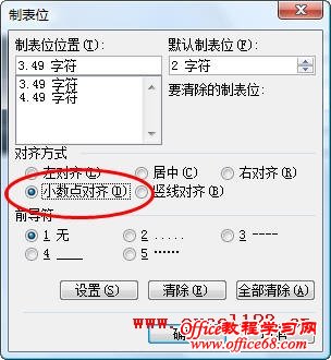 4.双击这个制表符,弹出“制表位”对话框,勾选“小数点对齐”,单击“确定”按钮。