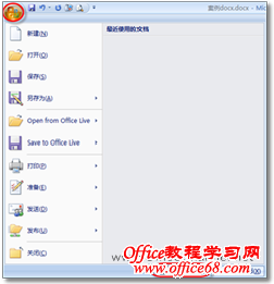 图4 打开“域”对话框 相比于前两种方法,使用“域”功能不仅可以插入当前日期,而且还可以插入文档的创建日期、保存日期等,这无疑为用户创建文档、编辑日期提供了更多的便利。 方法4:使用窗体“控件”插入日期 内容控件是可进行添加和自定义并应用于模板、表单和文档的单个控件。在Word 2007中,“日期选取器”控件包含日历控件,其将文本限制为单个段落,使用此控件可帮助用户快速输入日期。 (1)单击【Office按钮】,在随即打开的下拉菜单中单击【Word选项】按钮,如图5所示。